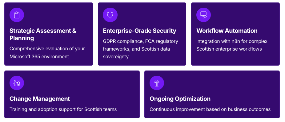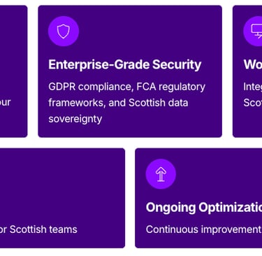 Transform your Scottish enterprise with AI-powered automation that delivers measurable results. Our proven methodology serves businesses from Edinburgh to Glasgow and throughout Scotland.